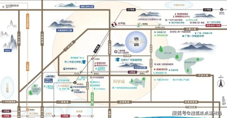【开控|城投·云锦】地处黄埔科学城与知识城双核交汇之处,紧邻地铁21号线长平站,距离仅约800米。通过便捷的轨道交通,居民可以轻松抵达广州市中心及其他重要商圈。项目周边交通网络发达,不仅有地铁线,还有规划中的多条公交线路,使得出行更加方便快捷。