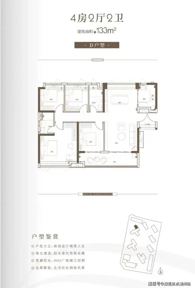 其中,99平方米户型是整栋楼唯一的小面积单位,朝北望江设计,主卧、客房和客厅都能欣赏到江景,户型实用且合理。如果对朝向不是太在意,这个低门槛户型是一个不错的选择。