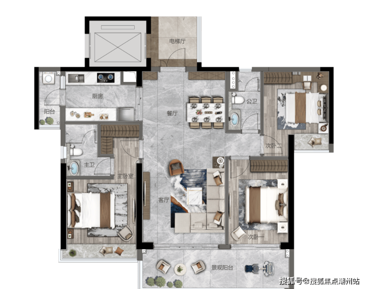 户型产品:约 124 ㎡ 3 房 2 厅 2 卫(4-5栋)