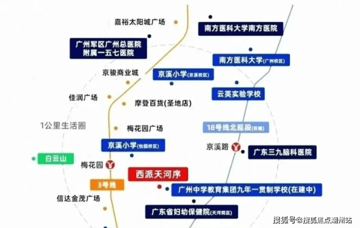 交通配套:中铁建西派天河序花园站仅350米,2站广州东,5站珠江新城,8站机场北。周边还有地铁18号线北延线京溪站预计2026年开通,开通后1站广州东站、2站冼村、3站琶洲。自驾的话周边有沈海高速广州支线、广州大道北广园快速等。