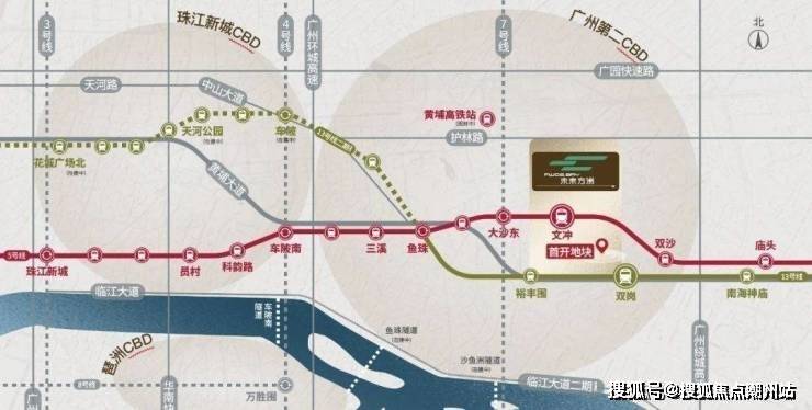 双黄金地铁线:5号线文冲站及13号线双岗站,3站金融城,6站琶洲,9站不换乘直达珠江新城板块