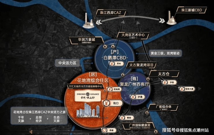 保利锦上印,它原本的楼盘名是保利西悦湾三期,是旧改融资区的第三个项目,比起保利西悦湾的前两期,会更加靠近地铁一点,从项目步行到坑口地铁站,大约850米左右,不算远。项目位于白鹅潭CBD核芯区。世界级商圈白鹅潭CBD,约6倍于珠江新城,3年总投资超3000亿,对标纽约、芝加哥等国际中央商务区。随着万象城、太古商业、广船综合体、COCO Park、山姆会员店等商业持续落地,白鹅潭商圈的商业总体量已超百万方。其中东漖资产包约40万平的滨水商业体分成了5大组团沿着花地河及支流,有机串联起项目住宅、学校等其他多个组团。换句话说,在保利锦上印家门口,就可以享受东漖资产包约40万平商娱配套。