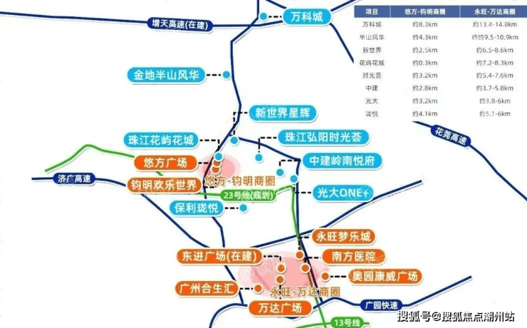 商业条件项目下楼即享3.5万㎡的商业星光道,预计年底开业,目前COSTA、KFC、世纪华联等意向商家已签约,未来将有超100+品牌商家。永宁板块的商业除了依靠小区底商,周边还有以合景悠方和钧明欢乐世界为主的商圈,另一个是以永旺梦乐城和新塘万达为主的商圈。