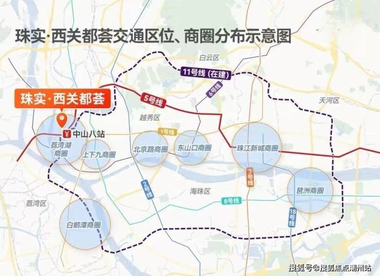 交通配套:全市重点项目中山八站TOD将竣工,与项目直线距离仅约500米,汇聚5+11号线、34条公交线路、社会停车场、商业、写字楼,文化空间等,含金量爆棚。要知道,中山八站手握的2条地铁,可都是广州的主动脉。至于11号线(已开通)则是广州首条环线,串连越秀、荔湾、天河等五区,沿线不仅有白鹅潭、琶洲等全新的经济中心,还有江南西、广州塔等成熟高端商业区域,繁华的片区近在咫尺,项目可谓出生便手握王牌。此外,34条公交路线汇聚中山八交通枢纽,因此,这也成为了公交、地铁、商业于一体的西部“巨无霸”。也就是说,在这个黄金交通圈之上,可以0换乘直达广州六大CBD。自驾通过内环A、B线,无缝衔接中山路、东风路、环市路等城市主干道,根据导航,从项目去白鹅潭、广船、珠城、白云新城、金融城、广州南、老黄埔等重点板块,不堵车情况下,基本在20-40分钟内可以通达。所以项目的交通通达性还是很便捷的。