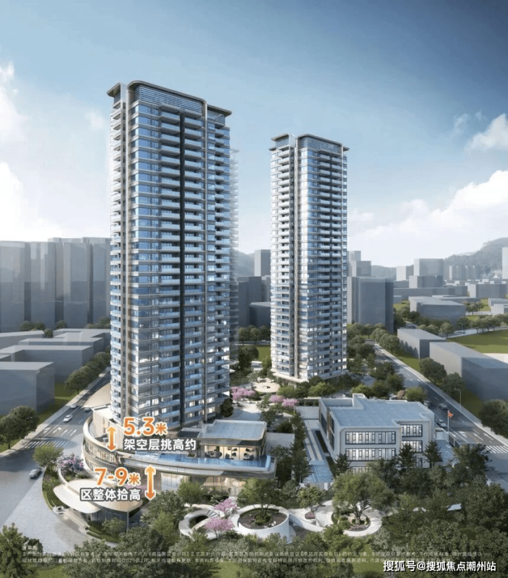 中建天钰共规划3栋26-32层高层住宅,总户数约460户,容积率约4.0,设计兼顾了出行效率与居住舒适度 。社区地块抬高了7-9米,退距约35米,形成类似"城市浮岛"的设计,能在一定程度上隔绝外界喧嚣。