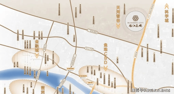 珠江花城占位广州第三科技中轴,毗邻天河智谷。茅岗路一线直达鱼珠CBD,直线距离约6km享三大CBD繁华生活。
