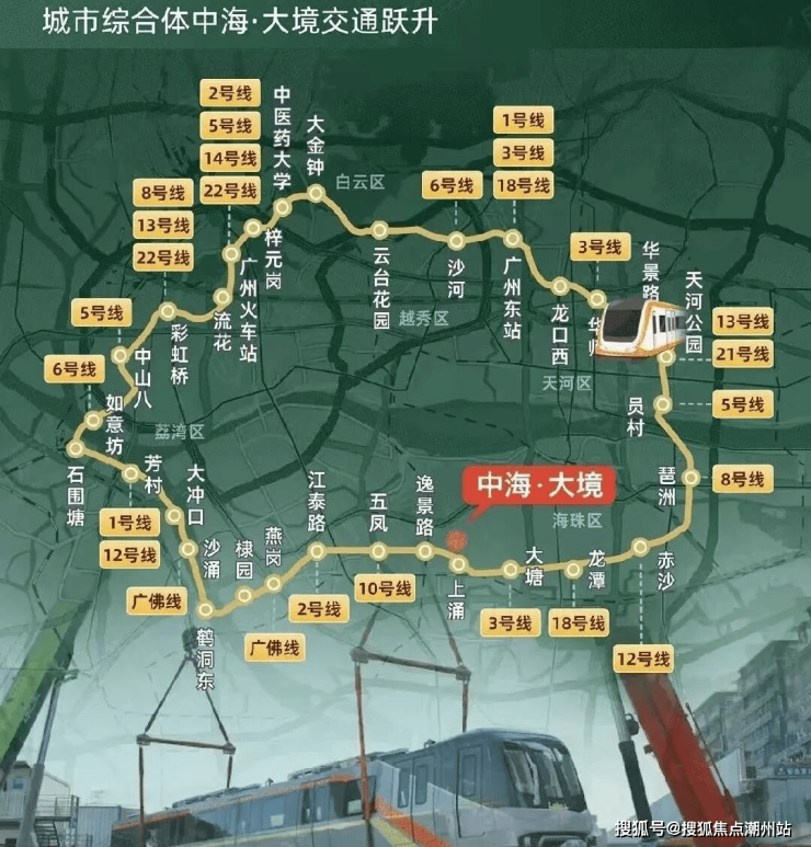 地铁11号线上涌站上盖,11号线是广州首条市区大环线,串联广州中心五区,与广州现有及未来的所有地铁实现换乘,被称为“换乘之王”虹吸全广州的优质资源。此外,旁边就是新滘西路和广州大道交界处,一脚油门也能到珠江新城和琶洲。