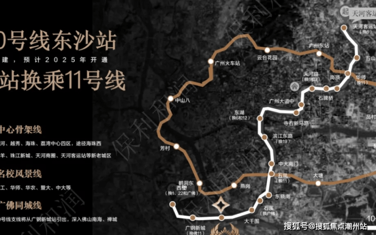 项目距离最新开通的10号线东沙站直线距离不到100米(就在家门口),4站中大,6站滨江东,零换乘直达珠江新城;