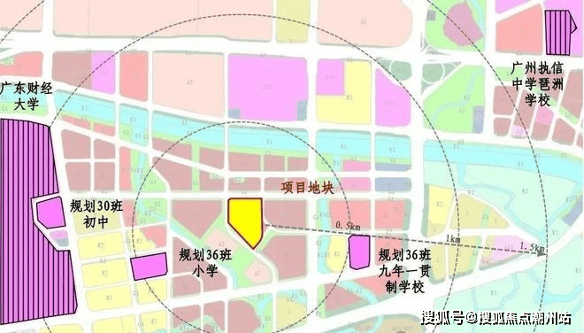 3、国际校圈:500米左右范围处规划一所36班小学、一所36班九年一贯制学校+国际私立+广东财经大学