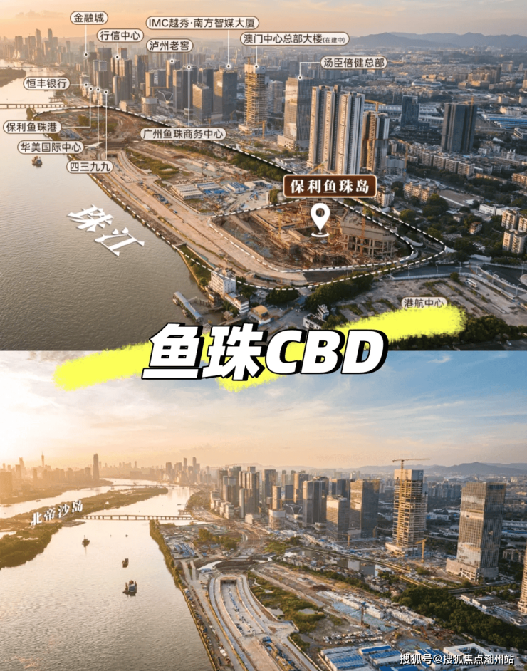 鱼珠湾商务区为广州两江东进桥头堡,与琶洲、金融城形成科技创新黄金三角,已入驻泸州老窖、恒丰银行等近千家企业,日均流动人口近20万。