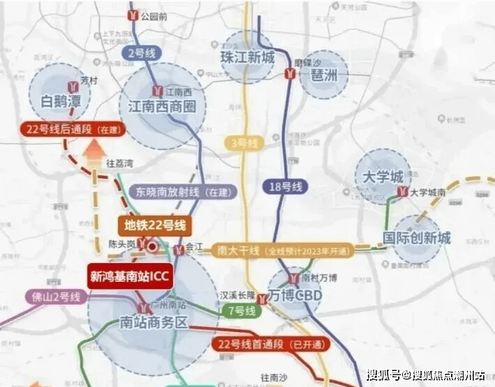 项目交通配套:项目距离地铁2号线广州南站仅600米。广州南站TOD纵享12条轨道交通,4高铁+4城际+4地铁无缝链接大湾区及国内9省。已开通地铁2号、7号、22号线和佛山地铁2号线。