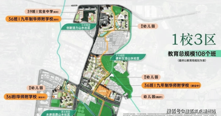教育资源:整个旧改三个组团规划了4所幼儿园,1所小学,2所九年制学校,还有1所完全中学{初中+高中},首先是渡头片的组团1,有一所36班小学,大沙东路和黄埔东路中间的文元片是组团2,配备一所36班九年一贯制学校,护林路沿线的江北片是组团3,配备一所36班的9年一贯制和39班的初高中。