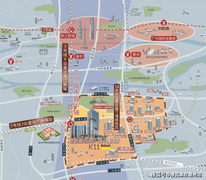 耀胜新世界广场项目位于万博-长隆商圈三轨交汇枢纽之上,三号线和七号线及佛莞城际轨道线交汇, 生活圈串连起珠江新城中央商务区、高铁南站及白云机场,快速便捷辐射东莞、广州、佛山三个大湾区城市。
