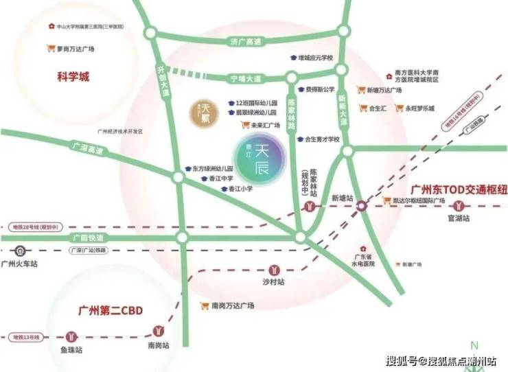 香江天辰坐拥广州东进战略“桥头堡”,与千亿级科学城仅一路之隔,共享新一代信息技术、生物医药、人工智能三大产业集群红利,超130家世界500强企业汇聚,人才与机遇在此澎湃共生。项目更毗邻规划中的广州东TOD中央商务区,未来将形成“九轨交汇”的立体交通枢纽,直连广佛莞核心区,成为湾区科创与经济的黄金纽带。