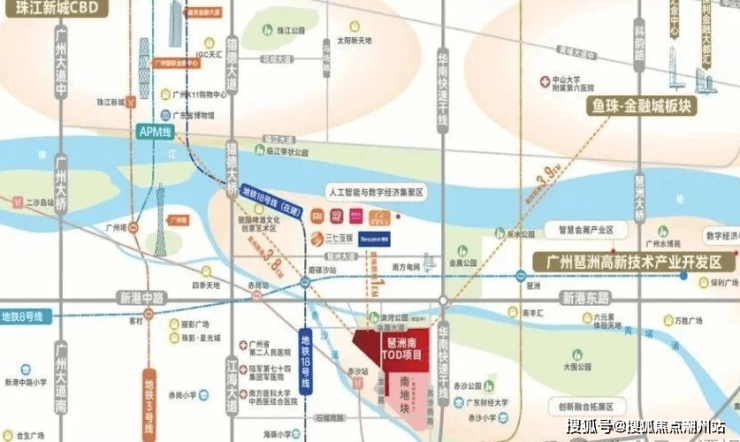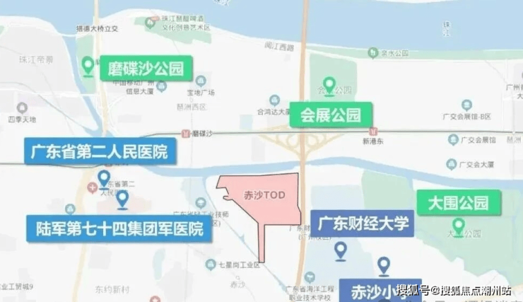 越秀琶洲南TOD项目位广东省广州市海珠区金运路1号,海珠赤沙TOD地块东侧紧挨华南快速干线,北侧隔着黄埔涌,对岸就是高楼林立的电商总部琶洲西区。