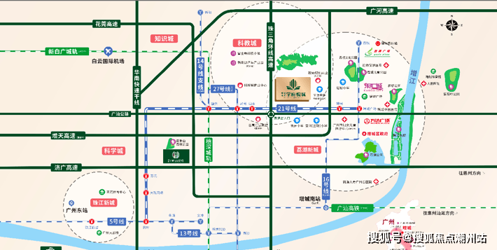 【交通配套】3221多维立体交通,增天高速30分钟天河,深度融入1小时湾区生活圈。3高速:北三环高速、增天高速(在建)、广河高速;2主干道:广汕公路、荔新公路;2地铁:21号线(1站增城广场3站黄埔5站天河、16号线(规划);1城轨:新白广城轨(在建中,预计2021年底试运营),开通后可直达白云机场,接驳穗莞深城际可到东莞西站,深圳北站重要交通要塞。三横三纵多维路网,快速通达主城区。