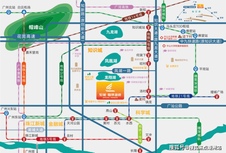 交通配套:知城·翰林湖畔得天独厚的交通条件是其一大亮点。项目周边覆盖了多条轨道交通线路,包括地铁14号线、21号线、穗莞深城际铁路等,未来还将有更多轨道交通线路贯穿其中,使得居民出行更加便捷。通过这些高效的轨道交通,业主可以轻松畅达广州东站、珠江新城以及广州主要商业、文化区域,形成一个半小时生活圈。项目还靠近多条高速公路和城市快速路,车主可通过广河高速、花莞高速、知识大道等快捷通道快速连接城市各大重要区域,实现无缝对接。