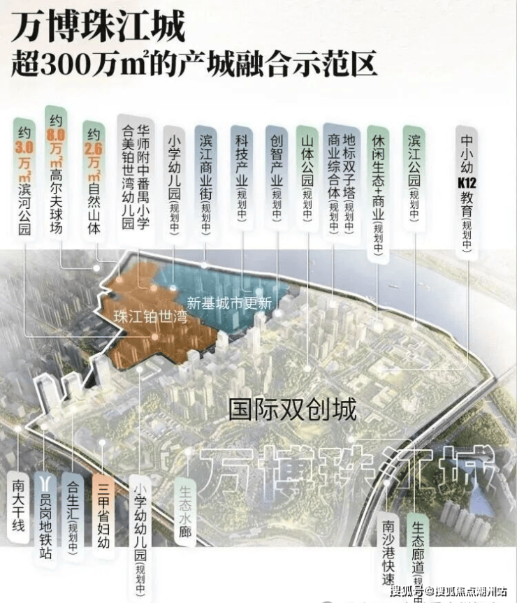 项目位于江山高尔夫俱乐部东侧,地处广州城市中轴&南大干线经济带双中轴交汇点,屹立于万博CBD唯一的滨江带上,“CBD城市顶尖资源+景观顶尖资源”的王牌资源在此双向奔赴,演绎珠江上的伟大重逢。项目超300万㎡产城融合代表作,重点布局“住宅-商业-产业-交通-教育-生态”6大领域,以8大价值打造宜居、宜游、宜业的理想幸福之城。