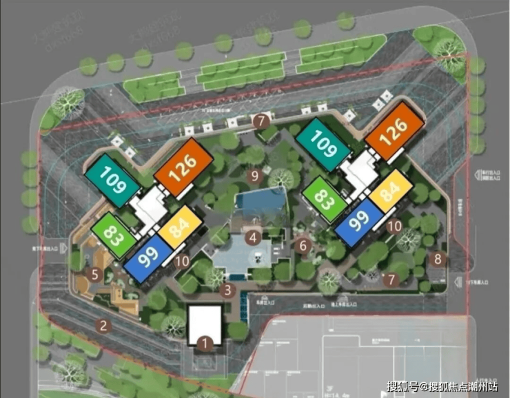 项目西边地块有2栋100米高的住宅楼,东边有1栋100米和1栋136米的楼,都是2梯5户设计,总层高27-28-39层。
