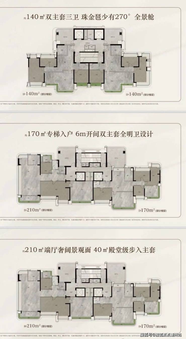 【 产品配置】北区2T3/3T4塔楼,南区2T2板楼,建面约120-140-170-210㎡云幕平层