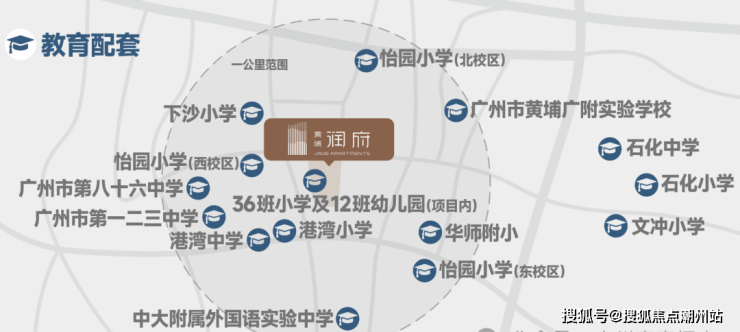 黄埔润府教育方面:黄埔润府除了社区配建36班小学及12班幼儿园,实现目送式步行上学之外,周边还聚焦了片区多所优质学校,怡园小学、下沙小学、港湾小学,以及广大附中黄埔实验学校、广州市八十六中学等。