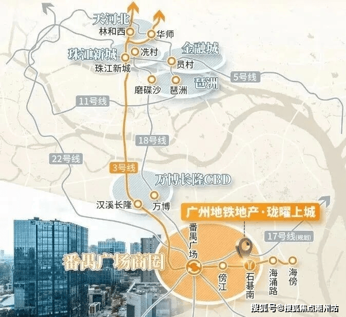 广州地铁·珑曜上城于中轴金脉之上,上联万博/琶洲/珠江新城,下联广州未来副中心南沙,承上启下,定鼎未来番禺生活新中芯。番禺发展已形成“北万博,南区府”双核心格局。万博区域以经济为支柱,区府兼具行政与生活服务核心功能。项目近区府板块,依托区府丰富资源和高级规划,具备无限发展潜力与优势。