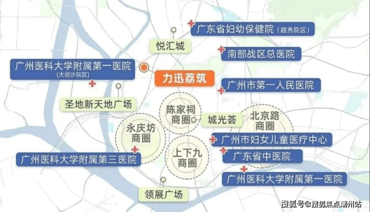 医疗配套项目3公里范围内广州市第一人民医院、广州医科大学附属第一医院、广东省妇幼保健院越秀院区、南部战区总医院、广州医科大学附属第三医院、广州市妇女医疗中心、广东省中医院等。