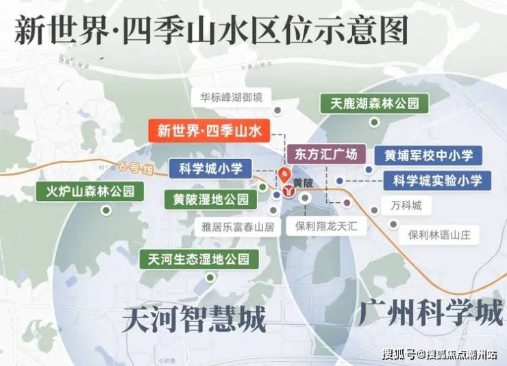 新世界四季山水坐落于天河智慧城与科学城的交界地带,地理位置优越,紧邻地铁6号线黄陂站C口,步行距离仅30米,实现了真正的“地铁上盖”概念。项目周边交通网络发达,除了地铁之外,还有广汕公路等主要干道,为自驾出行提供了便利。此外,项目所在的区域规划有完善的潮汐车道系统,有效提升了高峰时段的通行效率。