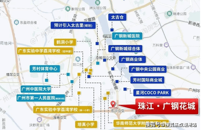 项目自身只配建了一所幼儿园,小学根据政策周边的学校,周边有东沙小学、新东小学以及广钢南区的华附荔湾小学等,具体读哪个就看交楼后教育部门的划分了。