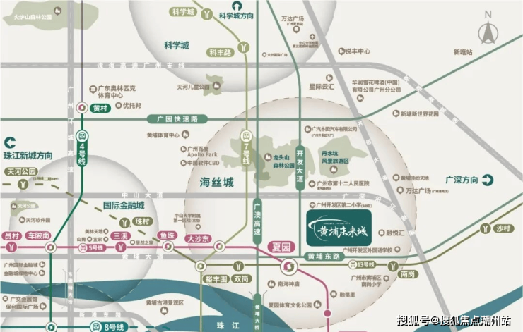 交通配套:中交科城・黄埔未来城在夏园站附近,老黄埔只有4个地铁站双线交汇,夏园是其中之一,这也让黄埔未来城有了直通核心的便利。从夏园地铁站C出口走去售楼部,大约1.1公里,14分钟左右;坐上5号线,可一轨直达鱼珠、金融城、珠江新城三座CBD,通过13号线,又能深入新塘TOD,若二期今年如期开通,项目还将多一条深入市区的快线。将军山未来的交通将四通八达,规划将打通东西向、南北向次干路,落实横一路、金竹山路两条隧道,预控横三路隧道,实现丹水坑与沙步村等组团的南北贯通、南岗片区与庙头片区的东西互联。
