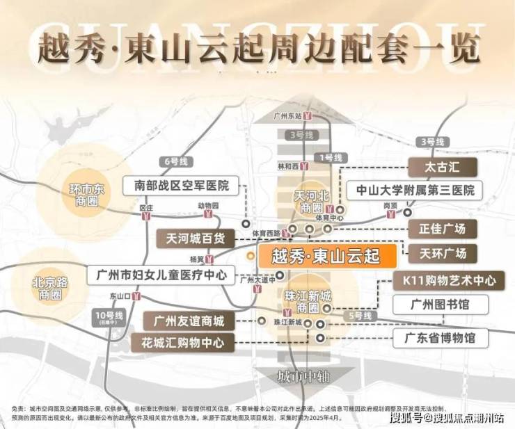 项目位于越秀区与天河区交界黄金地段,紧邻广州大道中步行可达地铁 5 号线五羊邨站(约 800 米)及 APM 线黄埔大道站 3 站直达珠江新城 5 站贯通天河北尽享双 CBD 配套。