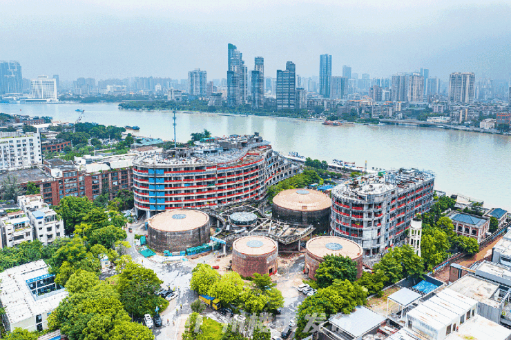 约800米极宽江面,更可瞰约2公里滨江绿地公园带和CBD繁华天际线,以珠江之光,点亮一座城市的千年荣光,广东省重点文化工程“三馆合一”项目全面封顶,目标打造成为“广东艺术的新客厅”。