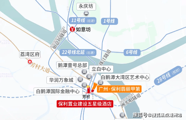 1号线和11号线交汇的芳村站就在附近,去广州各大CBD都方便,以后还可能有四线地铁,这地段想低调都难。地铁11号线开通后,白鹅潭大道和如意坊放射线(一期)已启动新一轮围蔽施工,冲刺年内通车,有望打通板块任督二脉。