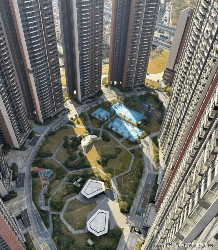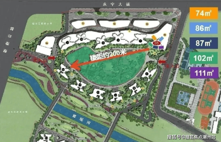 项目楼栋分布和户型:项目共规划建设有15栋住宅,分两个地块开发,由两座桥连接起来。采用围合式布局,最大楼间距超过200米,同时把中央园林抬高5米,塑造了更高视野的精奢社区。
