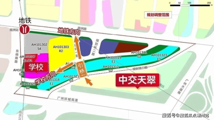 中交天翠自身只配建了一所9班的幼儿园,没有小学,隔壁馥香园配建了24班的小学,并且已经官宣引入广州五中附属实验小学,按照控规文件显示,学校对应的AH101324地块,距项目仅约300米距离,符合小学生居住地与学校距离3公里内的就近入学原则。