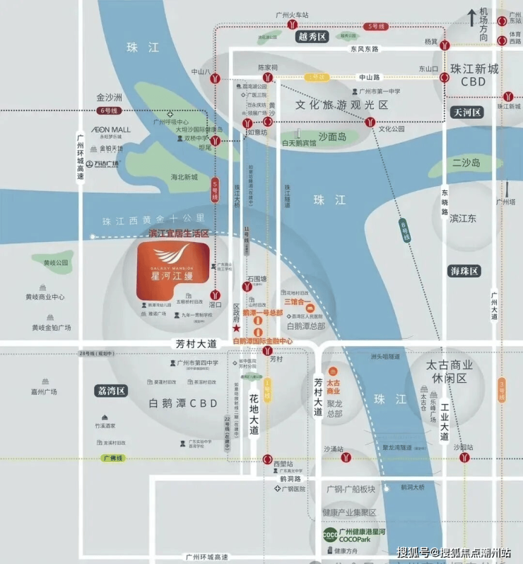 项目约750m即达5号线地铁滘口站,30分钟直达珠江新城,白鹅潭未来有超10条地铁线路穿过,覆盖大湾区1小时交通生活圈,目前广佛线、地铁1、5、6、8、10、11、22、号线已开通运营,地铁25号线等重要线路规划/建设中。