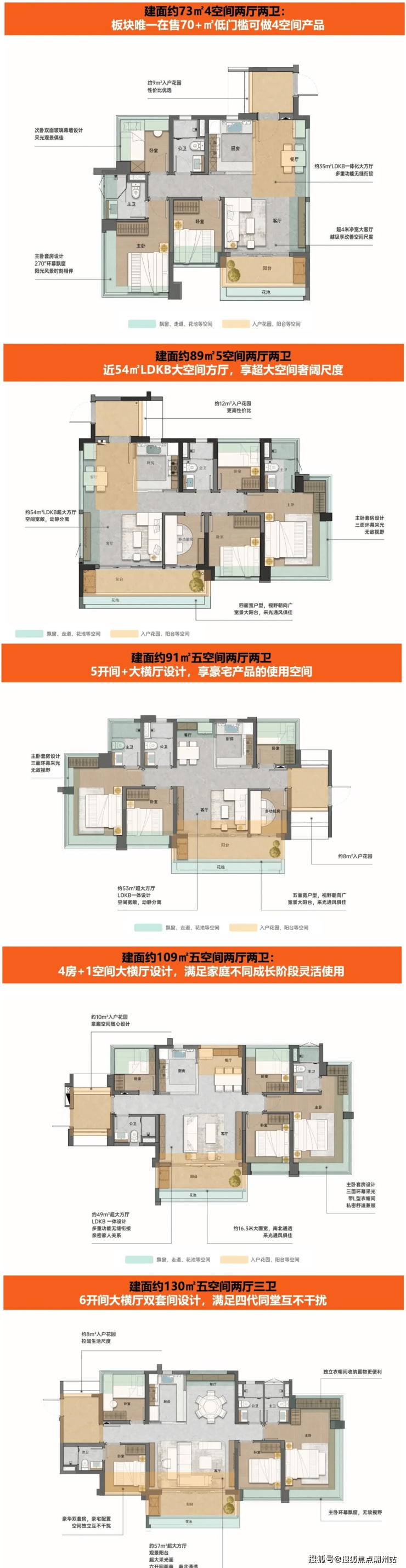 总规模:约68万㎡ 一期基础信息: 占地面积:11.5万㎡ 建筑建面:约28.48万㎡ 容积率:1.39 绿化率:35% 一期1地块户数:约1120户 户型面积:建面约73-130㎡全南向4/5空间两厅两卫 梯户比:1-2栋2T5,层高:32层,3-4栋3T5,层高:42层,8-9栋3T5,层高47层。 车位比:约1:1.1