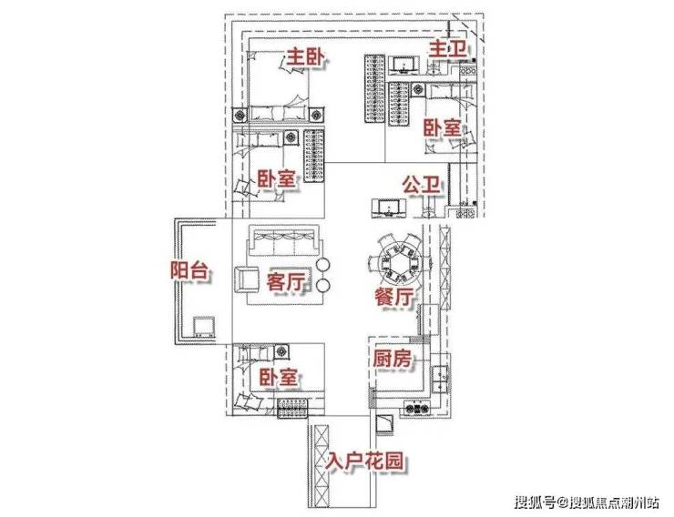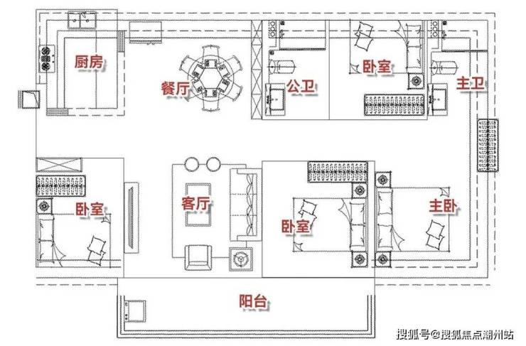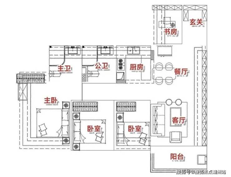84㎡做四房两卫,设计很牛,基本是73㎡plus版,不同之处在于,玄关处做了书房。