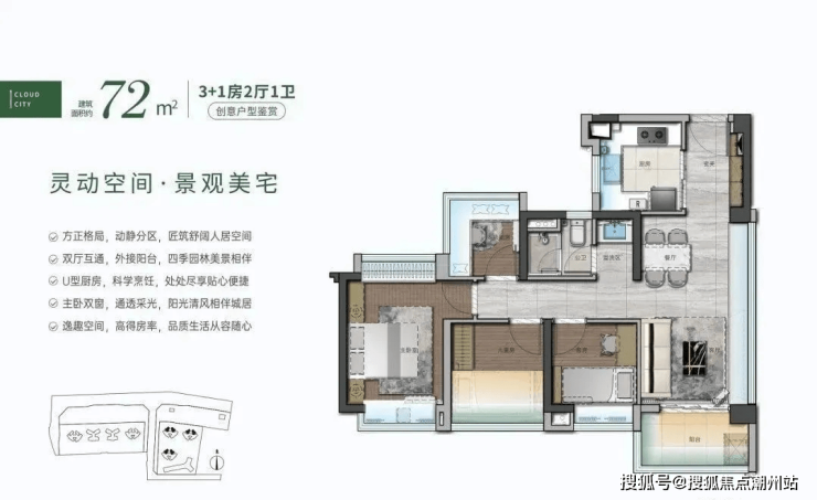 户型设计合理:主推建面约 72-105㎡户型,主打刚需上车,使用率很高,72㎡可做四房,满足不同家庭需求,且部分户型设计可变性强,业主能根据自身需求调整空间布局。