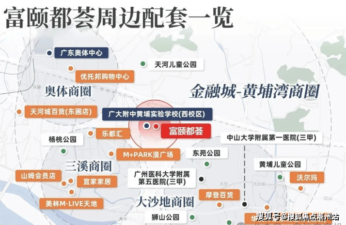 富力南驰·富颐都荟周边有中山大学附属第一医院三甲、广州医科大学附属第五医院三甲、广州市黄埔区中医院天河第二人民医院规划中。