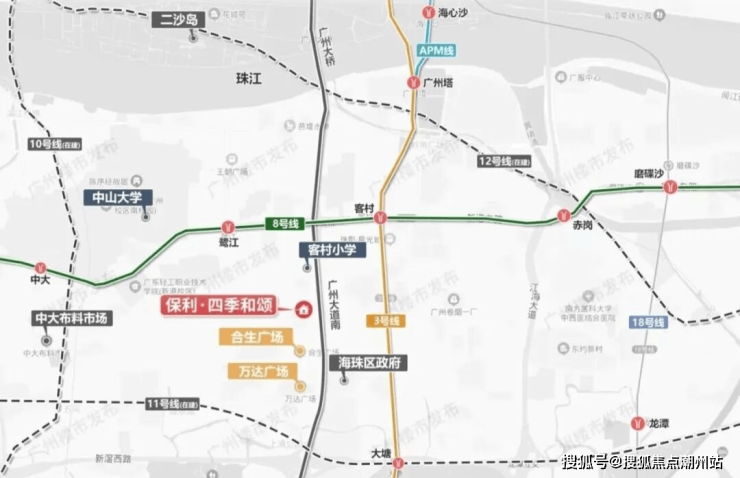 保利·四季和颂位于广州的新中轴线内,广州新中轴是广州发展的“大动脉”,天河北-珠江新城CBD中轴两端土地已发展饱和,顺应“南拓”发展趋势,未来的发展重心将落到海珠。项目占据城市最核心的位置,左拥海珠成熟老城,右抱琶洲数字经济区,项目途经广州大道南,到珠江新城只需5公里,到琶洲只需11公里,顶尖的资源及产业都沿着这条中轴铺开。