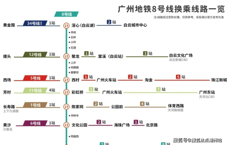 交通配套项目距离最近的地铁8号线滘心站约650米左右,步行大概10分钟左右,算是能接受的范围内,乘坐8号线去老荔湾、海珠等地都非常方便,中途可换乘的站点也非常多,小区旁还有公交始末站点,公交站就在家门口,项目公共交通的话还是比较不错的,自驾的话,周边有白云湖大道、许广高速、广佛肇高速等干线,出行也算方便,但是距离主城区还是比较远的。