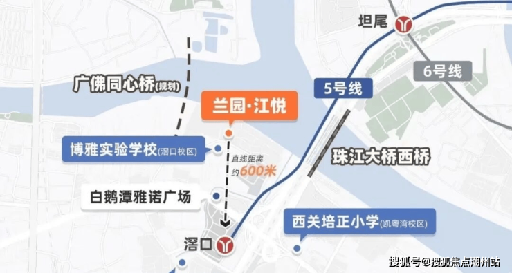 交通配套兰园·江悦:广州兰园江悦邻近地铁5号线滘口站大概1公里。自驾开车几分钟可到内环口,白鹅潭大道未来可连接白鹅潭CBD、广船、医药港等区域。规划中的广佛同心桥可直通佛山地区。