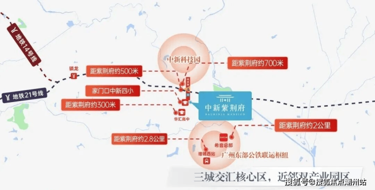 中新紫荆府位处中新片区核芯地段,距中新科技园约1公里、距广州东部公铁联运枢纽约2公里,坐享两大园区产业资源及未来发展前景。项目以其对幸福品质生活的承诺与兑现,致力于提升广州的品质人居体验。
