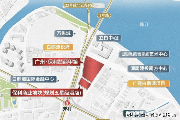 白鹅潭对标纽约、东京等中央商务区,以6倍于珠江新城的商业总体量,打造国际复合型CBD。核“芯”区住宅用地珍贵,近三年内谨此一座高端人居作品。白鹅潭兑现元年,商业、产业与交通协同驱动的区域跃升。瞰约800米宽江面,呈“水聚明堂、玉带环抱”之势,惟此羊城八景“鹅潭夜月”,与沙面岛隔江相望,白天鹅宾馆成为窗前永恒的人文地标。