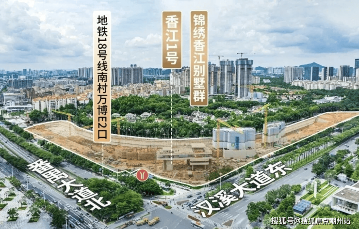 香江1号项目地段位置相当不错,一路之隔就是长隆万博CBD,小区门口就是地铁18号线南村万博,而身后看的锦绣香江别墅群。