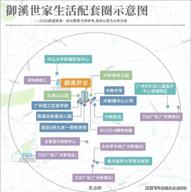 医疗配套周边有中新镇中心医院、广州市妇女儿童医疗中心增城院区、南方医科大学南方医院增城分院、中山大学附属肿瘤医院等三甲医院等。