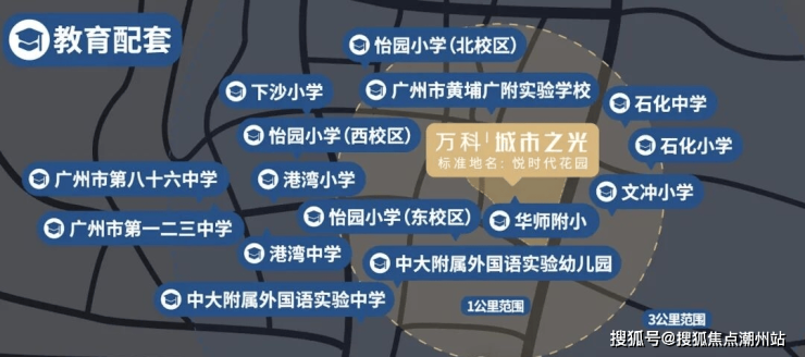 「纯熟配套所见所得」1公里内10所学校,优质教育环绕。项目配套:1所华师附小(已开学),规划2所幼儿园(1所2023年9月开学);周边7所小学(非项目配套学校):文冲小学(22班)、怡园小学(37班)、下沙小学(24班)、石化小学(20班)、中黄外国语小学(国际学校)、万科城市花园小学、怡瑞小学;周边4所中学:广大附中黄埔实验学校、石化中学、中大附属外国语实验中学(国际学校)、港湾中学;