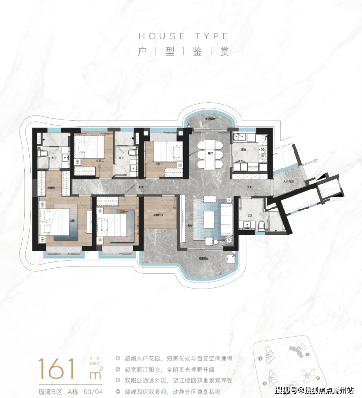项目在售建面约109-253平滨江现楼,以及建面约105-275平临江大平层公馆。