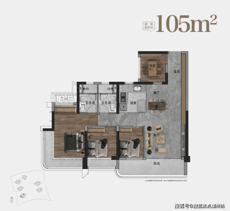 105㎡-约6.1M巨幕阳台 | 270°环幕瞰景主卧|LDKB一体化设计